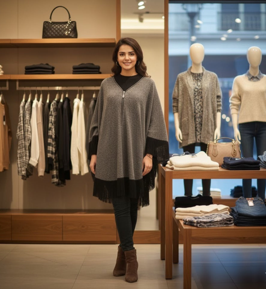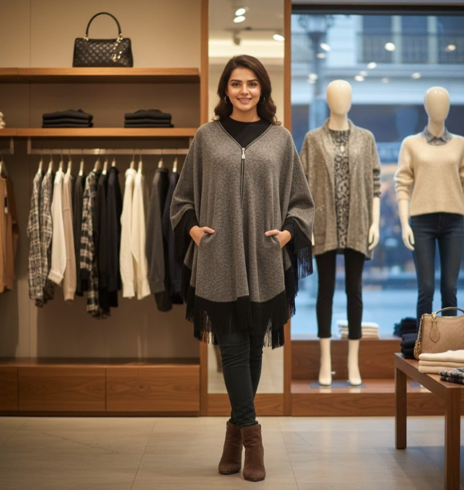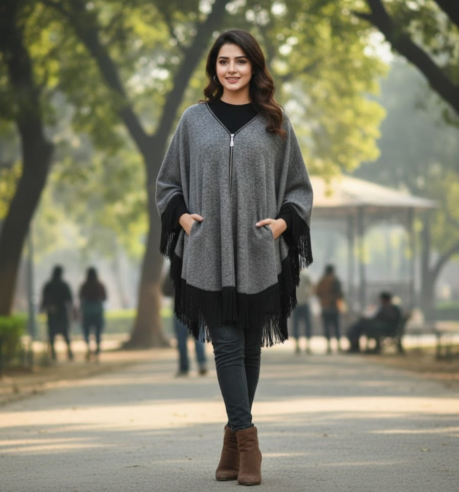 Fleece Poncho  a warm and stylish cape-style outerwear perfect for cold weather. Made from soft fleece fabric for comfort and insulation. Standard free size with a relaxed fit, suitable for most body types. Ideal for casual winter wear, layering, and everyday use.